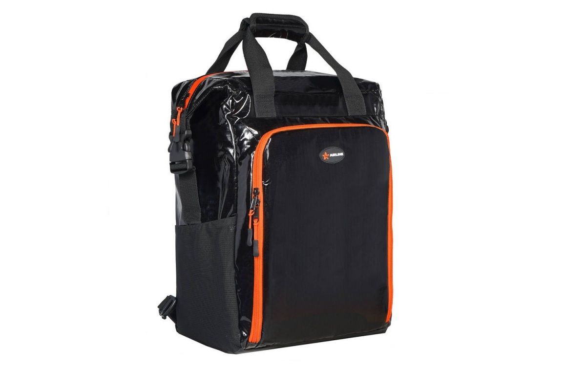 Кроме того, Airline выпустил на рынок два новых терморюкзака. 19-литровый рюкзак выполнен из ламинированной ткани с водоотталкивающей пропиткой (арт. ADCB011; 5110 рублей), а 27-литровый вариант имеет дополнительные карманы (арт. ADCB012; 3680 рублей). Самая вместительная (48 л) и дорогая (7320 рублей) термосумка размещена на пластиковом каркасе с колесиками и складной телескопической ручкой. Модели отличаются только по цвету: можно выбрать черно-оранжевый (арт. ADCB013) либо черно-оранжевый в сочетании с серым (арт. ADCB014).