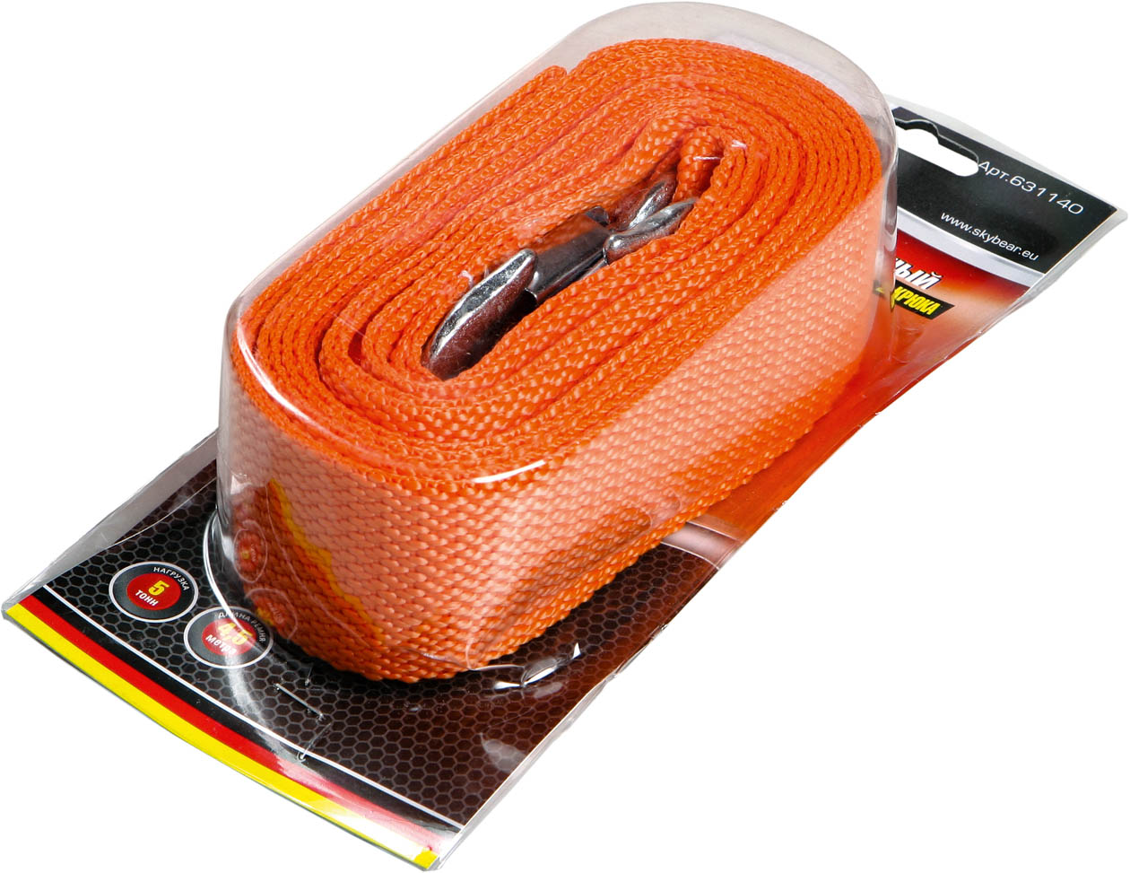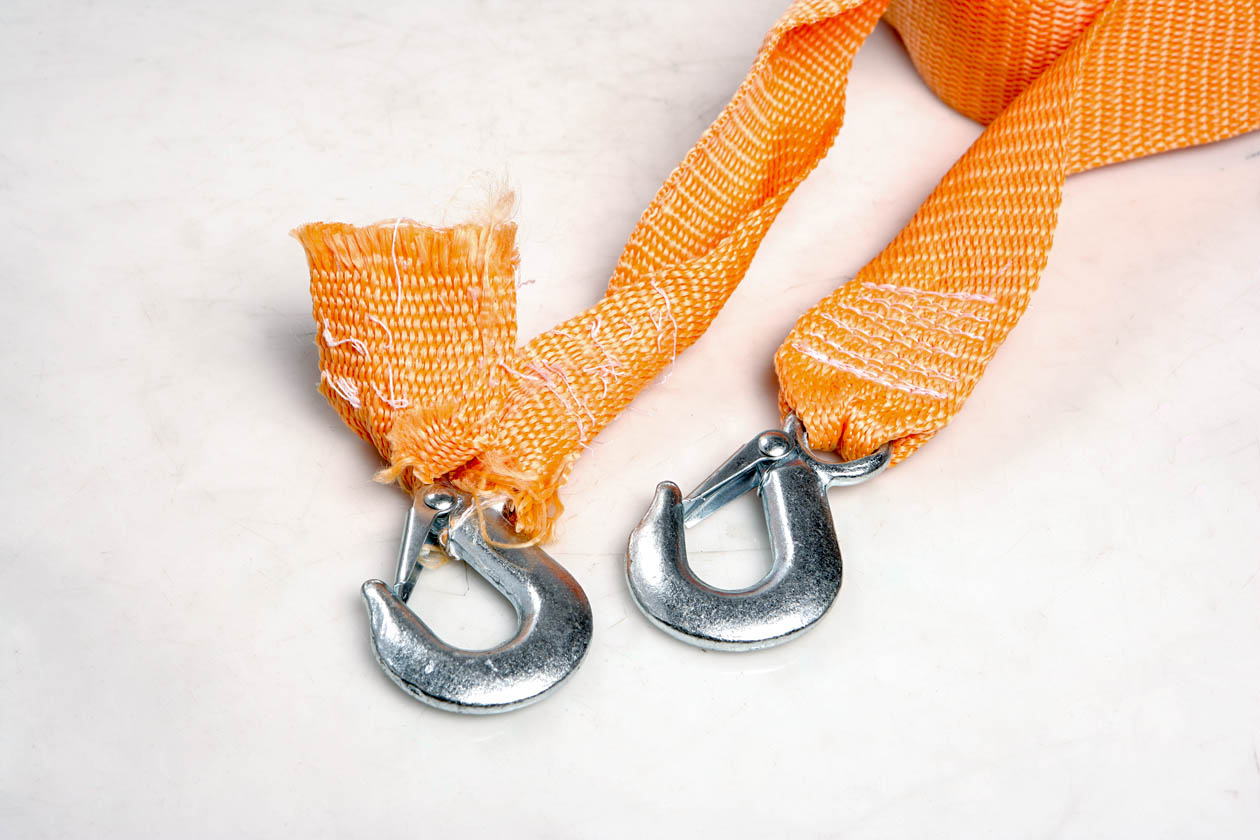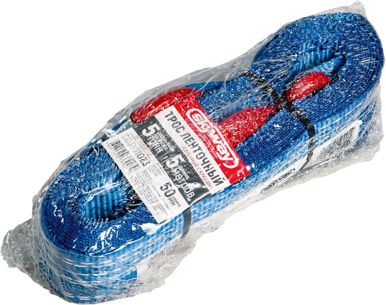 Хочется выделить этот трос-ленту синего цвета за мощные крюки, которые, скорее всего, действительно выдержат нагрузку 5 тонн. Причем, в отличие от большинства других производителей, именно в такой формулировке это и указано. Другие либо вообще не указывают, что означает нагрузка 5 тонн, либо пишут, что трос способен буксировать автомобиль массой до 5 тонн, что не одно и то же.