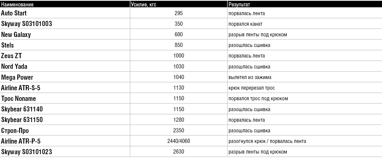 Skybear 631140 — подвела сшивка ленты при том же усилии, при котором порвался стальной трос.
