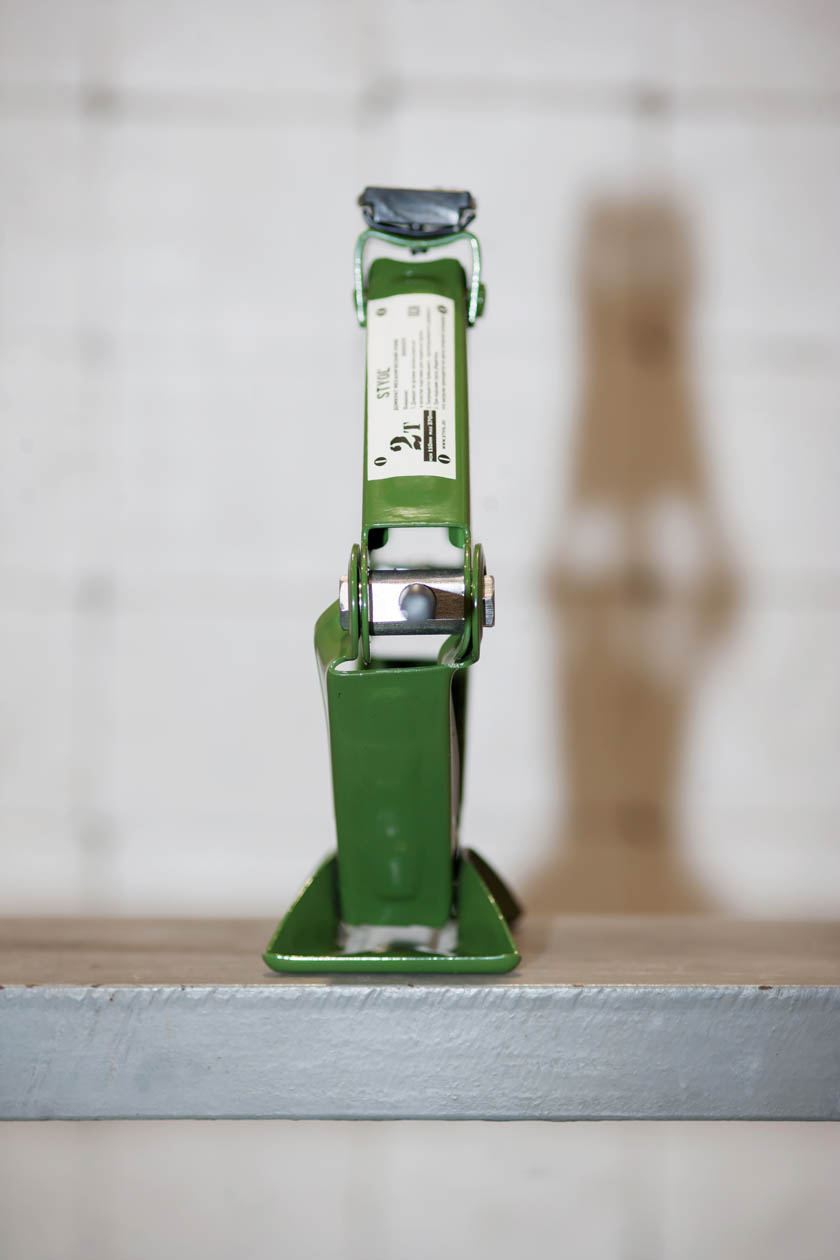Владелец бренда явно стремился отнести данный вид домкратов к мужским аксессуарам. Домкрат покрашен в армейский зеленый цвет (в траве он может просто затеряться). Коробка из серого гофрокартона смотрится бедновато на фоне ярких упаковок конкурентов. Внутри коробки помимо домкрата лежат инструкция, гарантийный талон и складная ручка-крючок. Из всех конкурентов у данного образца самая низкая заявленная высота подъема. Домкрат имеет резиновую накладку на опорной площадке.