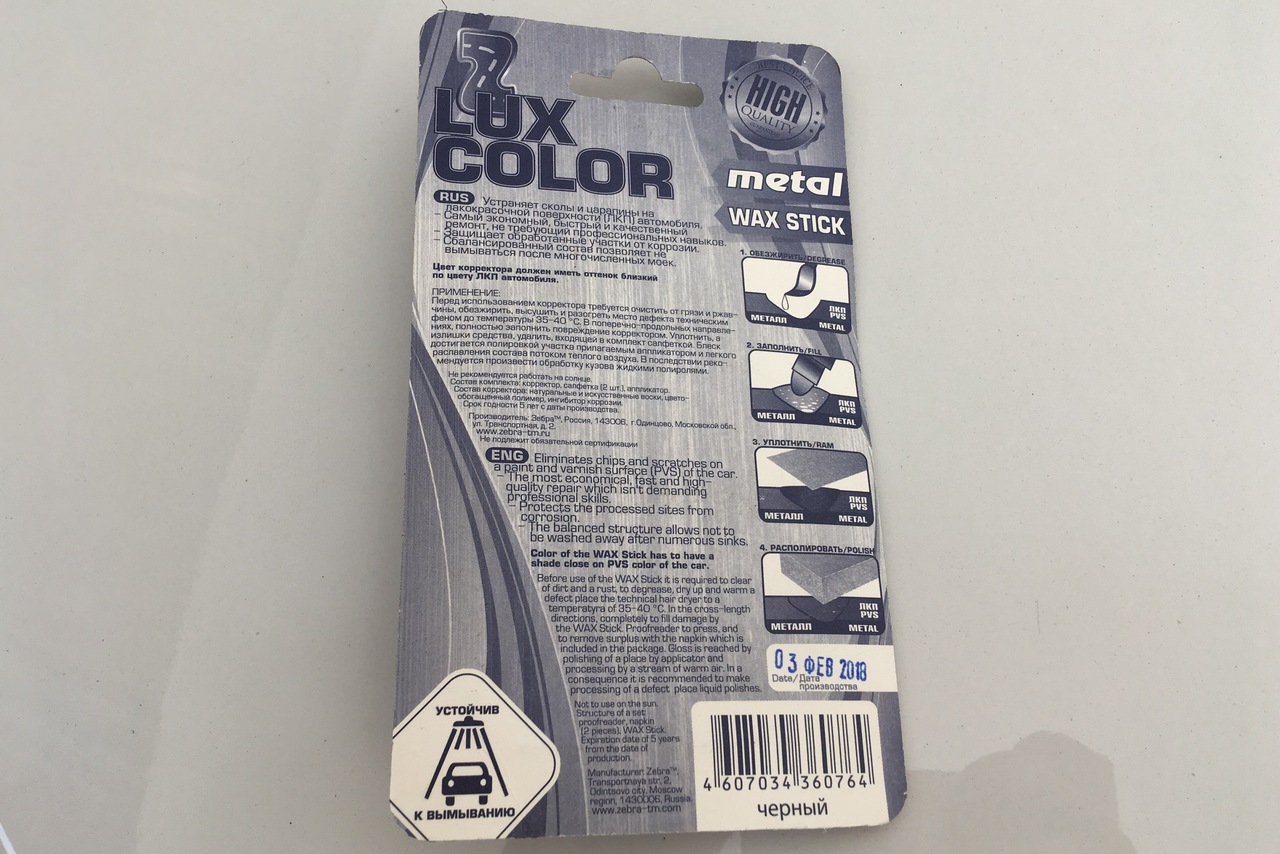 Еще желательно иметь под рукой нагревательный элемент, поскольку состав карандаша вплавливается эффективнее, чем втирается. А производитель еще и обещает функцию антикора, поскольку воск препятствует попаданию влаги. Кроме того, карандаш оказался самым простым в применении, если не считать желательного нагрева. В целом неплохой вариант для тонких и неглубоких царапин, например от веток деревьев. Скрыть полностью он ничего не сможет, но заретушировать белую грунтовку — вполне.