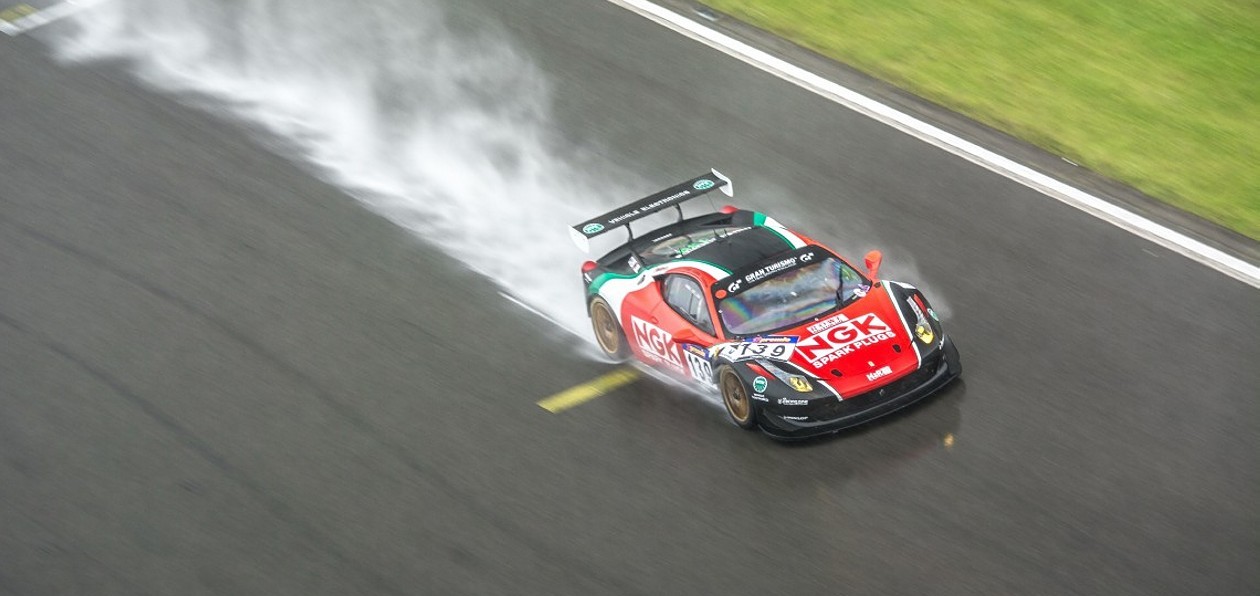 По итогам квалификационных заездов команда RaciNGK избрала в качестве гоночной тактики максимально эффективное вождение при минимальном риске. Черно-красный Ferrari 458 RaciNGK под управлением Штефана Колера стартовал с поул-позишн в категории SP8 и буквально с первых метров дистанции вступил в «водяное состязание»: в то время, как некоторые отрезки трассы были почти сухими, на иных болиды были полностью скрыты в облаках водяных брызг.