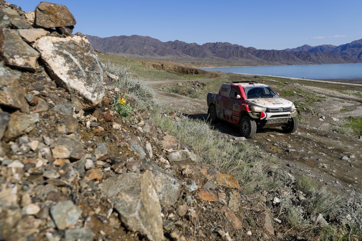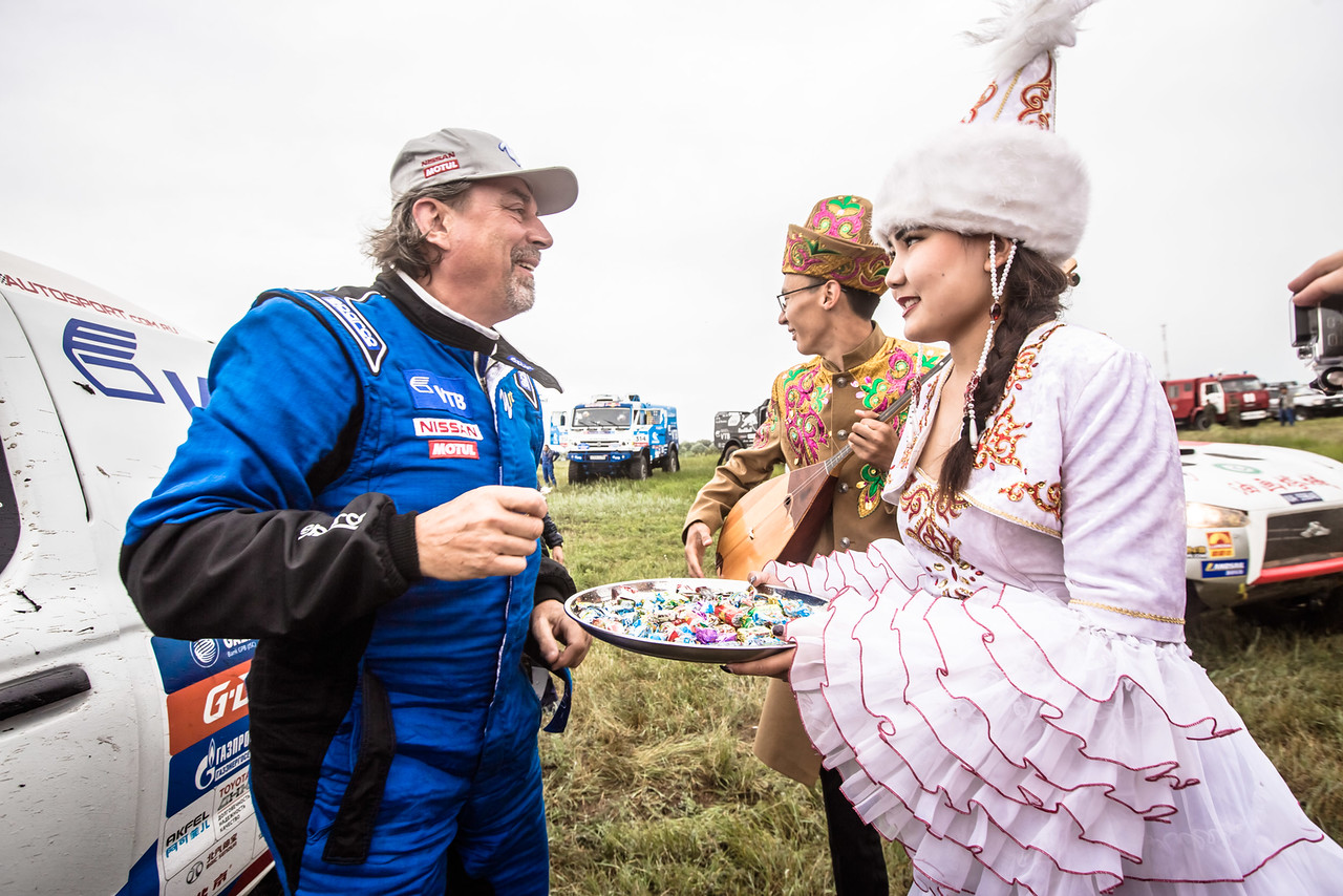 Четвертый этап ралли-марафона "Шелковый Путь" стартовал уже в азиатской части континента. Маршрут проходил на севере Казахстана, где запутанные степные дороги создавали серьезные проблемы для штурманов. Кроме того, ровно в полночь штаб ралли перевел время гонки на три часа вперед, синхронизировав его с казахским временем, и экипажи команд были лишены трех часов жизненно необходимого им сна.
