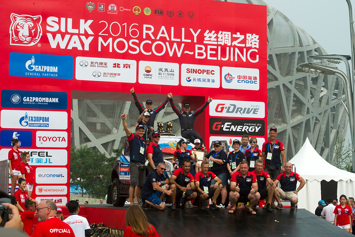 В заключительный праздничный день марафона участники ралли-рейда преодолели лиазон и добрались до столицы Китая, проехав мимо Великой китайской стены. Торжественная церемония подиума и награждение победителей состоялись в Олимпийском парке Пекина возле Национального стадиона также известного под названием «Птичье гнездо». Победителями «Шелкового пути» среди внедорожников стали французы Сириль Депре и Давид Кастера на Peugeot. Вторую позицию в общем зачёте занял экипаж на MINI саудовца Язида Аль-Раджи и немца Тимо Готтшалька.  Владимир Васильев и Константин Жильцов завоевали итоговое третье место.