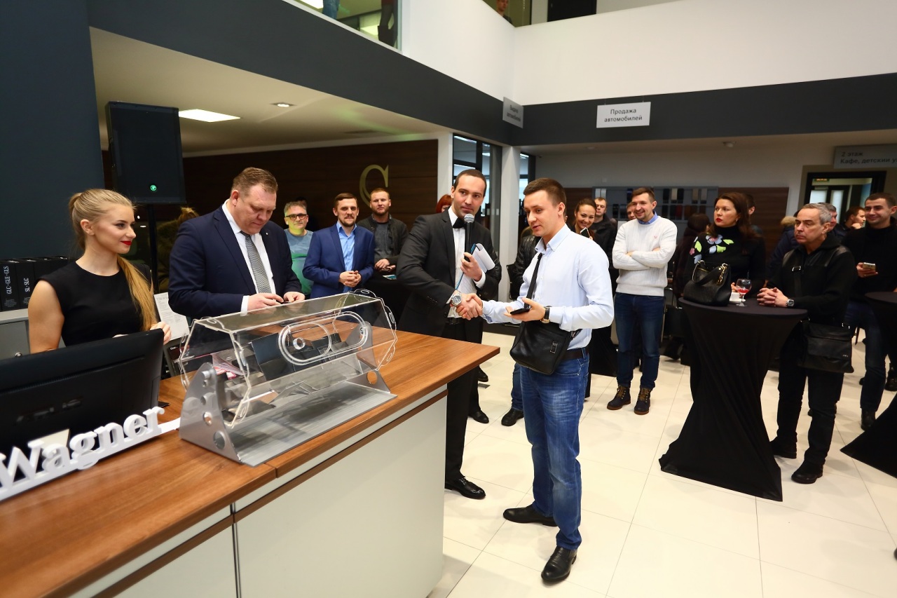 Все мероприятие проходило в праздничной атмосфере дилерского центра «Вагнер» с фуршетом и выступлением саксофониста Никиты Пивня.