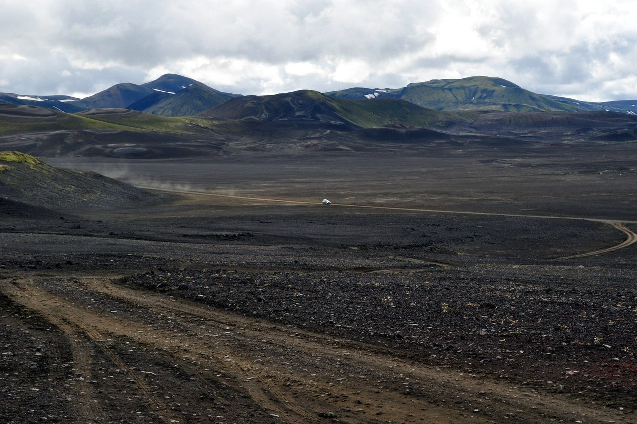Обо всём по порядку. В Исландии есть дороги общего пользования (85% от общего числа) и так называемые F-дороги (без асфальтового покрытия), проезд на которые не на полноприводном автомобиле запрещён. Прокатиться в глубь острова по грунтовке конечно же хотелось, тем более 40 км пути к одной из главных достопримечательностей - марсианской долине риолитовых гор с очередным непроизносимым названием «Ландманналаугар», проходит именно по F-дороге.
