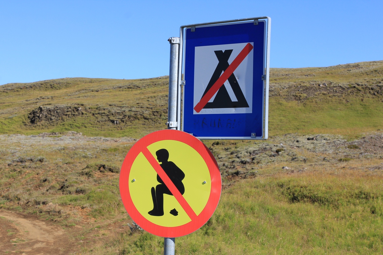 Хотя и серьёзный проступок глупого иностранца может вызвать у местных ироничную реакцию. Однажды вечером приехав в национальный парк Тингвеллир (один из исторических символов страны льдов), не заметили знак, запрещающий въезд на авто вглубь территории. Припарковавшись в самом центре исландской государственности, через пару часов прогулки вместо эвакуации или штрафа на лобовом стекле мы обнаружили записку следующего содержания: