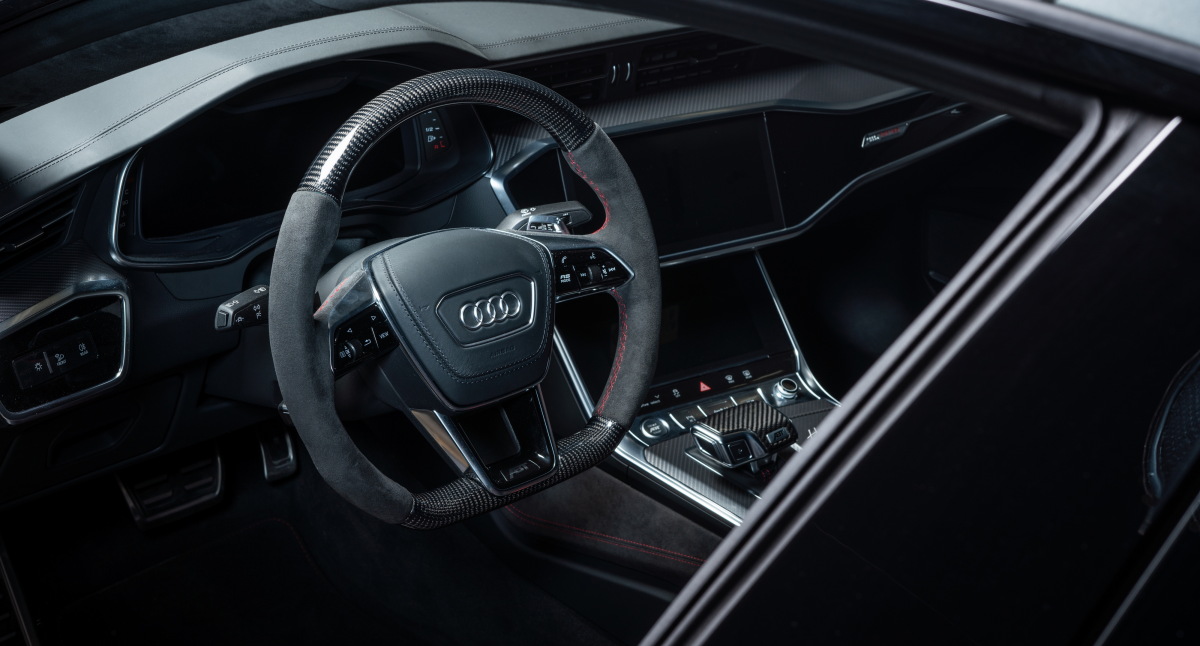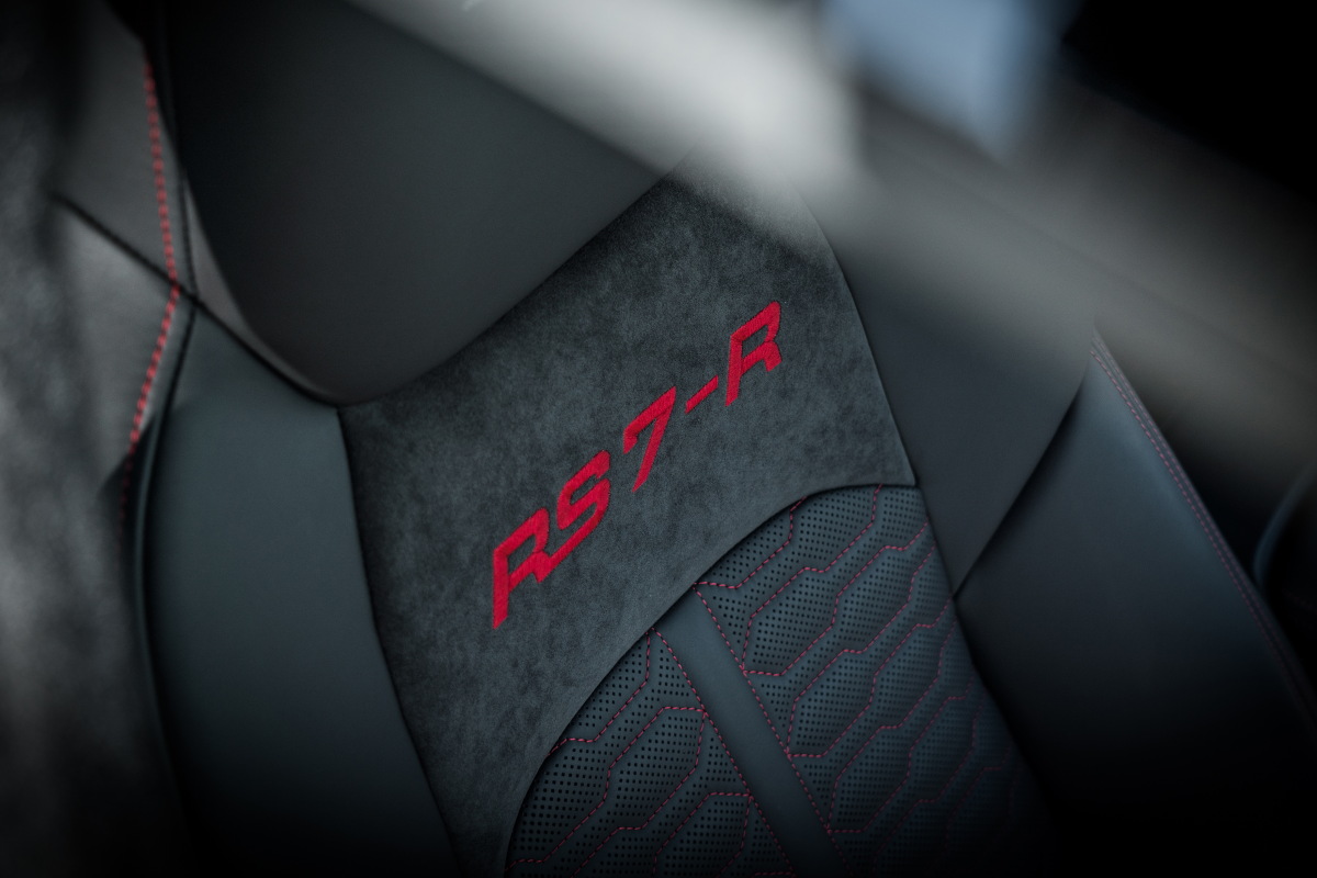 Салон RS7-R от ABT обшит натуральной кожей и «Алькантарой» и украшен карбоновыми декоративными вставками; на спинках кресел вышит логотип “RS7-R”.