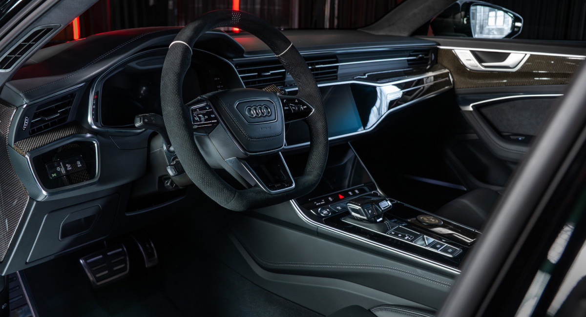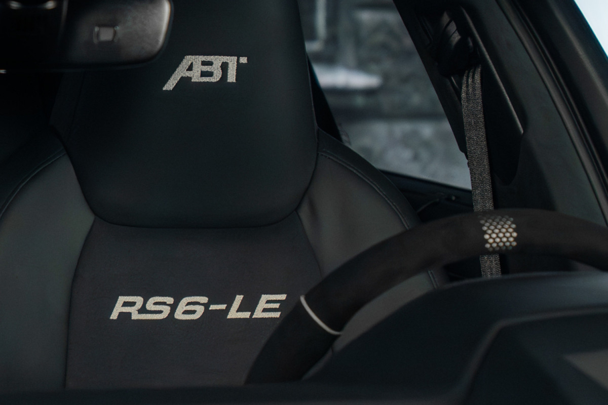 Салон нового RS6-LE 800 отделан «Алькантарой»; декоративные вставки на передней панели и селекторе коробки передач выполнены из полированного углепластика. На порогах и сиденьях размещены логотипы “RS6-LE”.