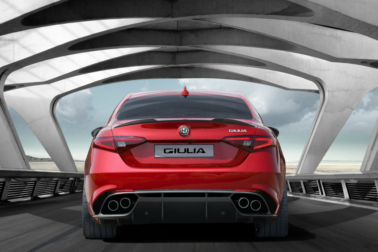 Первой была показана самая «заряженная» версия Alfa Romeo Giulia, которая носит название Quadrifoglio Verde и именно ее уже окрестили главным соперником BMW M3 и Mercedes-Benz C63 AMG. Автомобиль отличает аэродинамический обвес, которого не будет на обычной версии, активный передний сплиттер, который автоматически регулирует уровень прижимной силы для лучшей стабильности и сцепления на высокой скорости, а также задний дифференциал повышенного трения и систему Torque Vectoring, независимо перераспределяющую крутящий момент на каждом из колес. А сзади видны сдвоенные патрубки выхлопной системы.