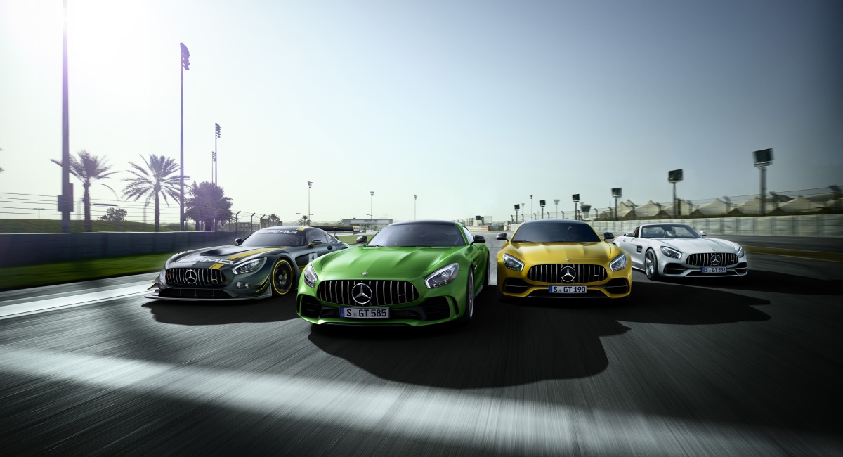 Свое 50-летие мерседесовское ателье отметило обновлением суперкара Mercedes-AMG GT (автомобиль претерпел легкий рестайлинг, а также получил более мощные двигатели в большинстве модификаций) и выпуском юбилейной спецверсии Edition 50 (на фото снизу).