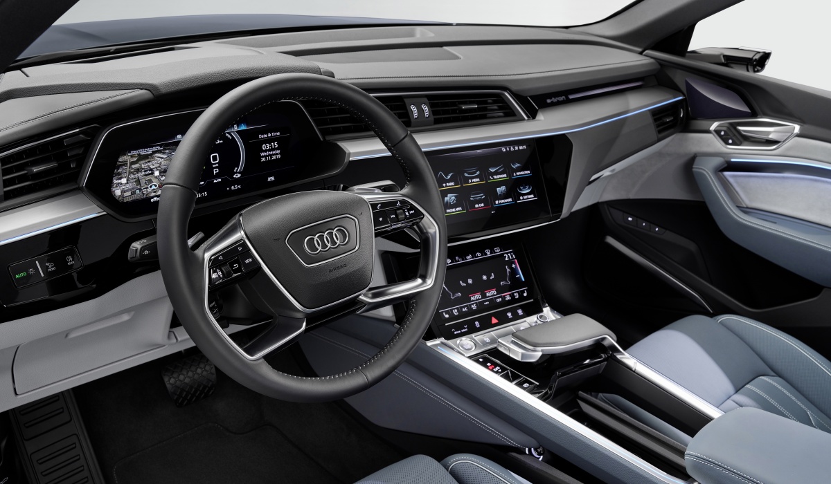 Внутри новый Audi e-tron Sportback оформлен в фирменном стиле «цифрового кокпита», который характерен теперь не только для электрических, но и для традиционных бензиновых и дизельных автомобилей марки. На выбор покупателям доступны стандартные, спортивные или контурные сиденья с функциями вентиляции и массажа, входящими в список опций.