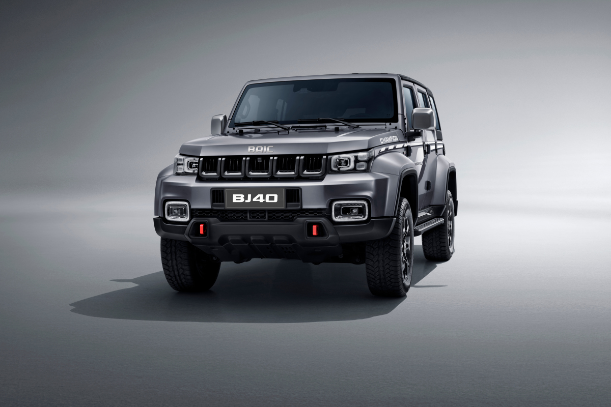 BAIC BJ40 в версии Champion отличается матовой окраской кузова, дополнительными декоративными элементами, тормозными суппортами и пружинами подвески красного цвета, а также полностью чёрными колёсными дисками.