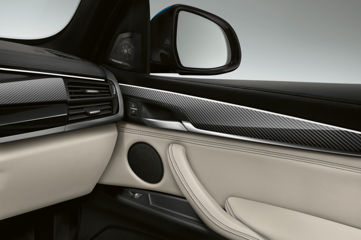 BMW X6 в версии M Sport Edition получил особый вариант окраски кузова Long Beach Blue (голубой металлик), в отделке салона используются карбоновые вставки.