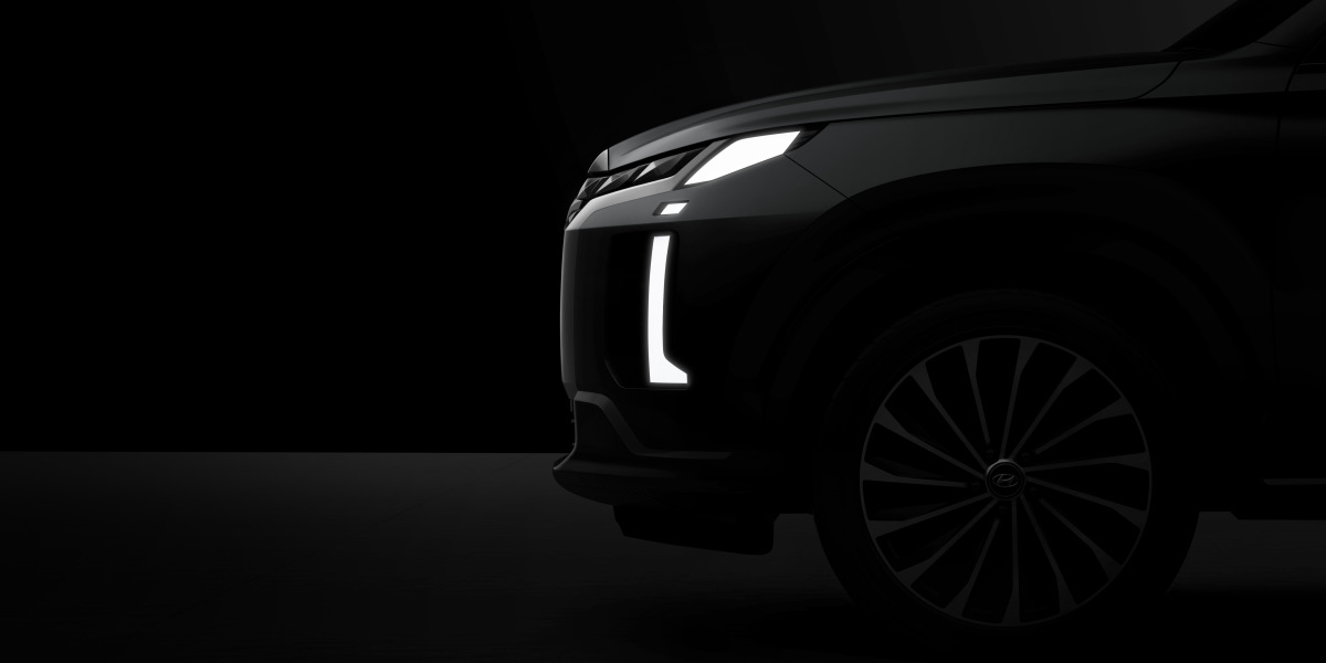 По словам представителей марки, дизайнеры постарались сделать облик флагманского кроссовера более премиальным. С обновлением Palisade получит прямоугольную решетку радиатора с измененным декором вместо прежнего шестиугольника. Граница крупных ячеек очерчена хромированной накладкой: вероятно, два крайних прямоугольника окажутся задействованы в системе освещения.