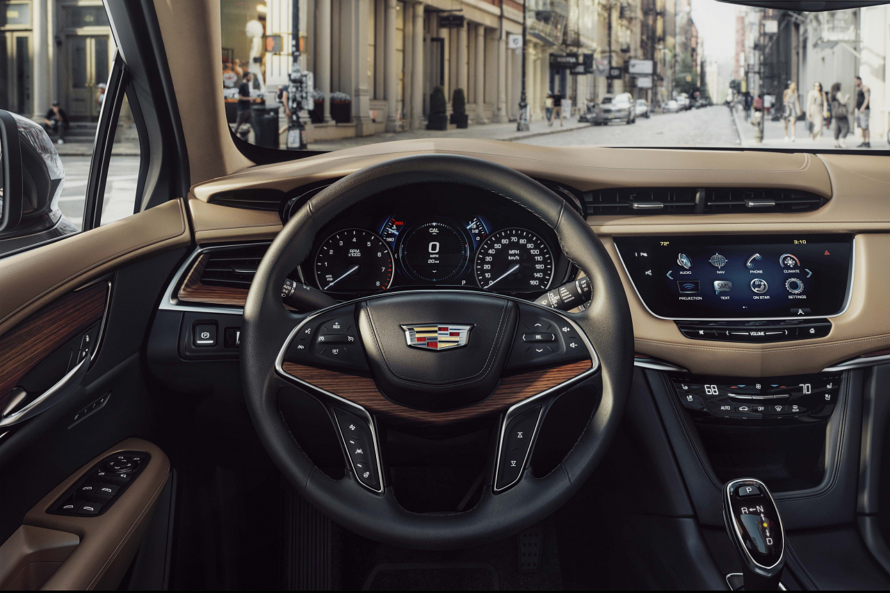 Салону нового XT5 его создатели уделяли особое внимание. Дизайн интерьера полностью переработан, по сравнению с SRX здесь стало значительно больше дорогих материалов, в отделке используются элементы ручного раскроя и пошива вместо штампованных панелей.