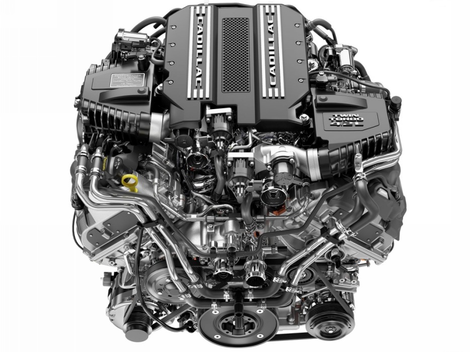 Под капотом CT6 V-Sport – новая, разработанная мотористами Cadillac «с нуля» бензиновая 4,2-литровая V-образная «восьмерка» с непосредственным впрыском топлива и парой турбокомпрессоров, расположенных в развале блока цилиндров.