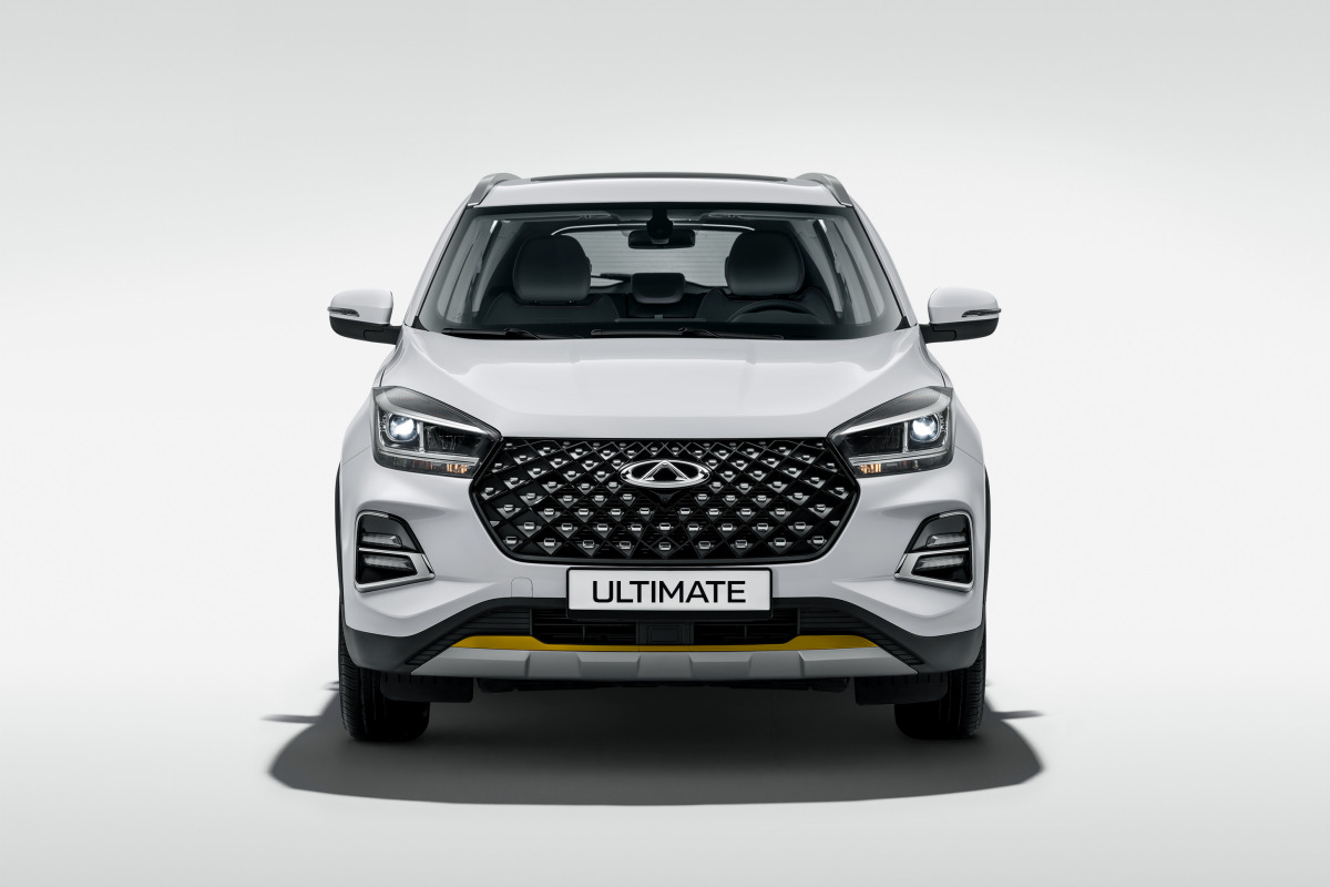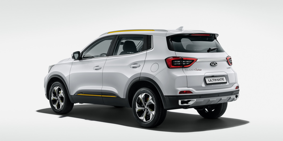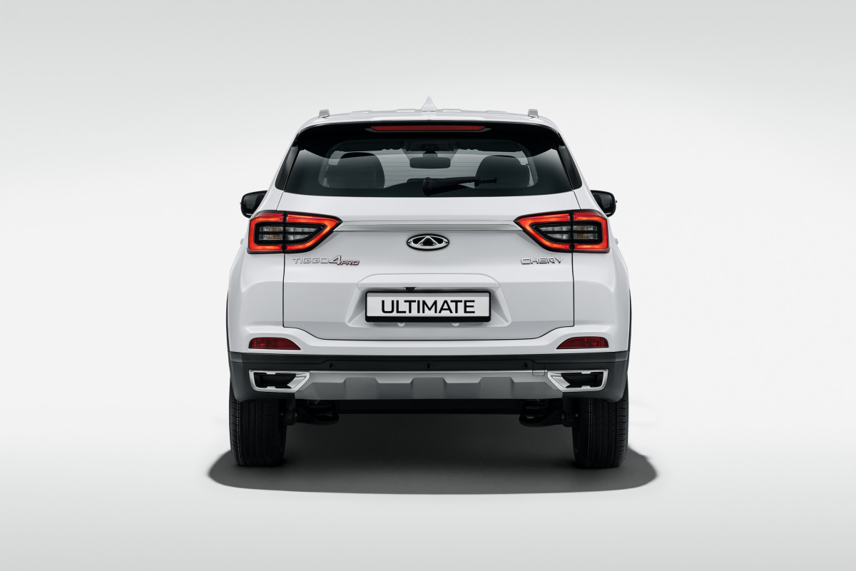 У компактного кроссовера Chery Tiggo 4 Pro появилась пятая, самая богатая комплектация Ultimate. Главными отличиями от комплектации Style (от 2 399 900 рублей) стали 18-дюймовые легкосплавные диски (вместо 17-дюймовых), боковые шторки безопасности (общее число эйрбегов выросло до шести) и желтые декоративные элементы на переднем бампере, накладках на дверях и рейлингах (у версии Style они красные). Салон «ультимативной» версии обит черной кожей с серой декоративной строчкой.