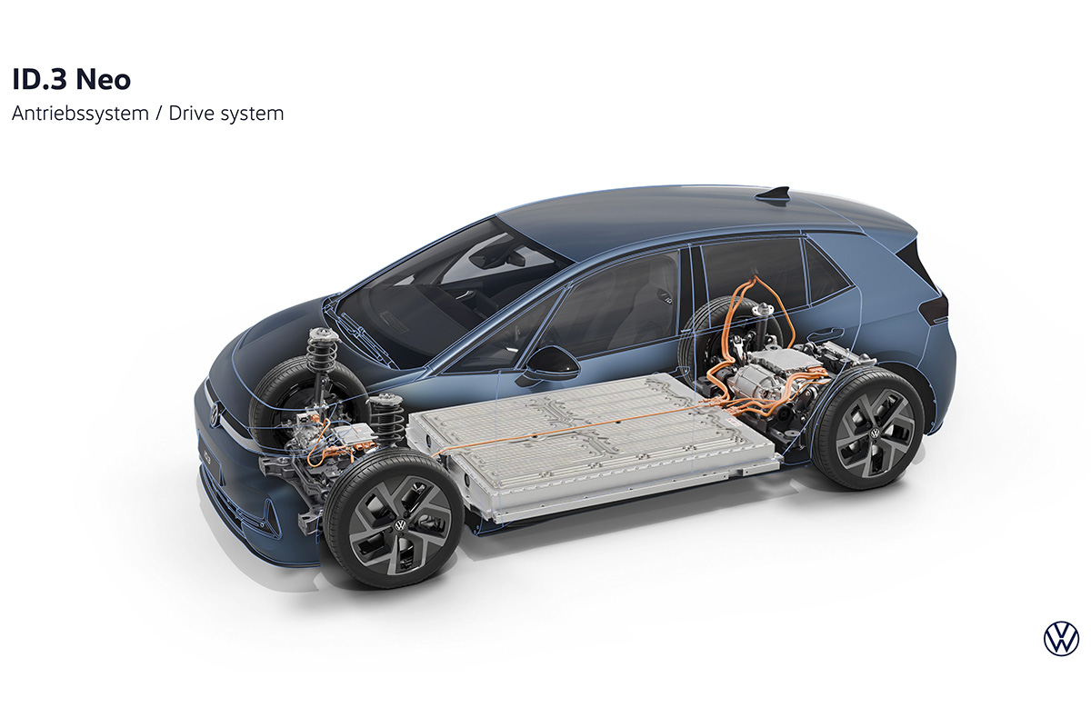 Аккумуляторы на 50 и 58 кВт·ч могут заряжаться постоянным током мощностью до 105 кВт, а на 79 кВт·ч – до 183 кВт. Заявленный запас хода Volkswagen ID.3 Neo – до 630 км в ездовом цикле WLTP.