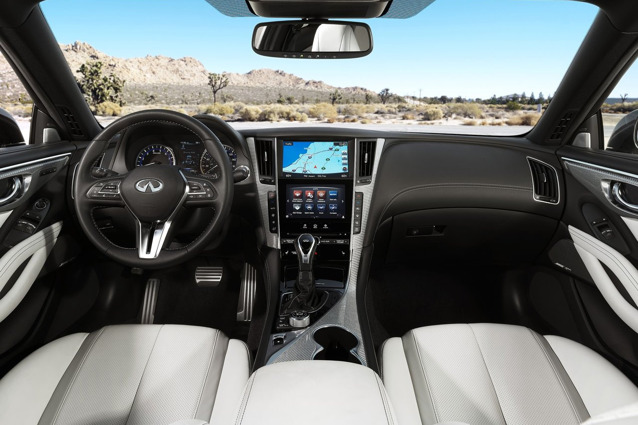 Внутри новое купе также навевает ассоциации с современными Infiniti. В качестве опции можно заказать особую отделку натуральным деревом черного цвета. Кроме того, Q60 получил «продвинутую» мультимедийную систему с премиальной «акустикой» Bose с 13-ю динамиками.