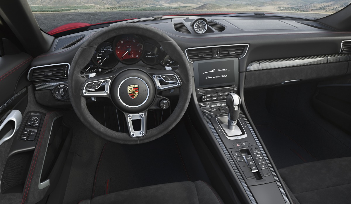 Интерьер машин семейства GTS также отделан по-особому. В переднюю панель интегрирован секундомер Sport Chrono, сиденья, руль, центральная консоль и подлокотники обшиты алькантарой с особой прострочкой. Автомобили получили также декоративные накладки на переднюю панель из сатинированного алюминия с черным анодированием.
