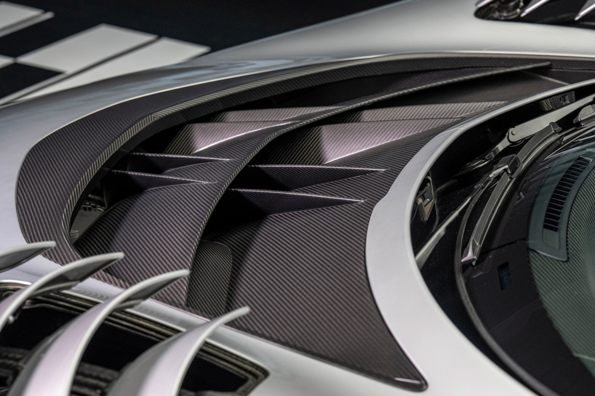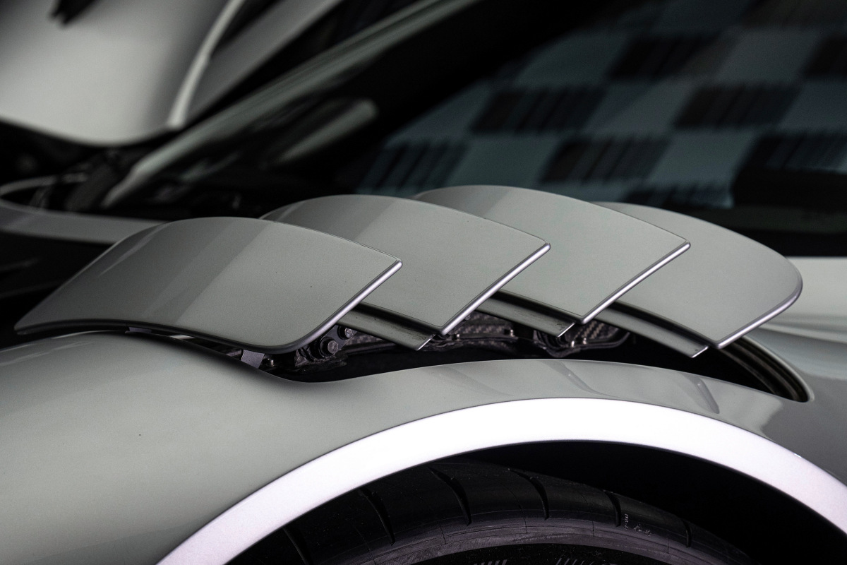 Длина гиперкара составляет 4756 мм при длине колесной базы 2720 мм. Однако машина получилась необычайно низкой (всего 1261 мм) и широкой (2010 мм). Немцы особенно гордятся активной аэродинамикой своего гиперкара. Всего подвижных элементов четыре: передний диффузор, воздуховоды нед передними колесами (для дополнительного охлаждения тормозов) и подъемное антикрыло, на котором смонтирована подвижная секция для увеличения прижимной силы.