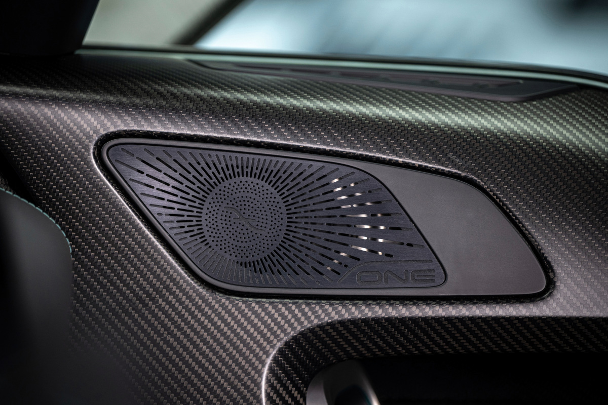 В отличие от формульного болида, салон у One двухместный, а ложементы кресел интегрированы в карбоновый монокок. Усесться поудобнее помогут регулировки угла наклона спинки (всего в двух положениях – с уклоном 25 либо 30 градусов!), а также руля и педального узла. Скошенное на «полюсах» рулевое колесо, конечно, лишь имитирует гоночное. В него встроена подушка безопасности, а дополнительные тумблеры отвечают за управление мультимедиасистемой. Из прочих «гражданских» решений – два 10-дюймовых дисплея, кондиционер и электростеклоподъемники.