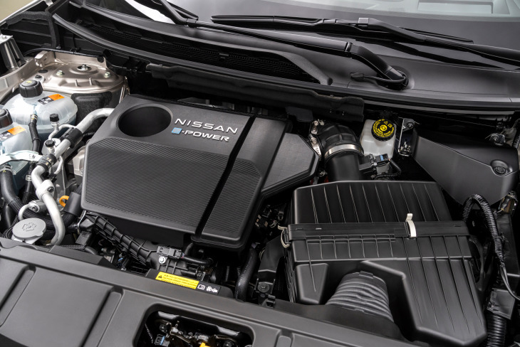 Открывает гамму «мягкий гибрид», где бензиновому ДВС помогает 12-вольтовый стартер-генератор. Мотор настроен на отдачу в 163 л. с. и 305 Нм работает в связке с вариатором Xtronic и передним приводом. Разгон до «сотни» занимает 9,6 с, максимальная скорость – 200 км/ч.