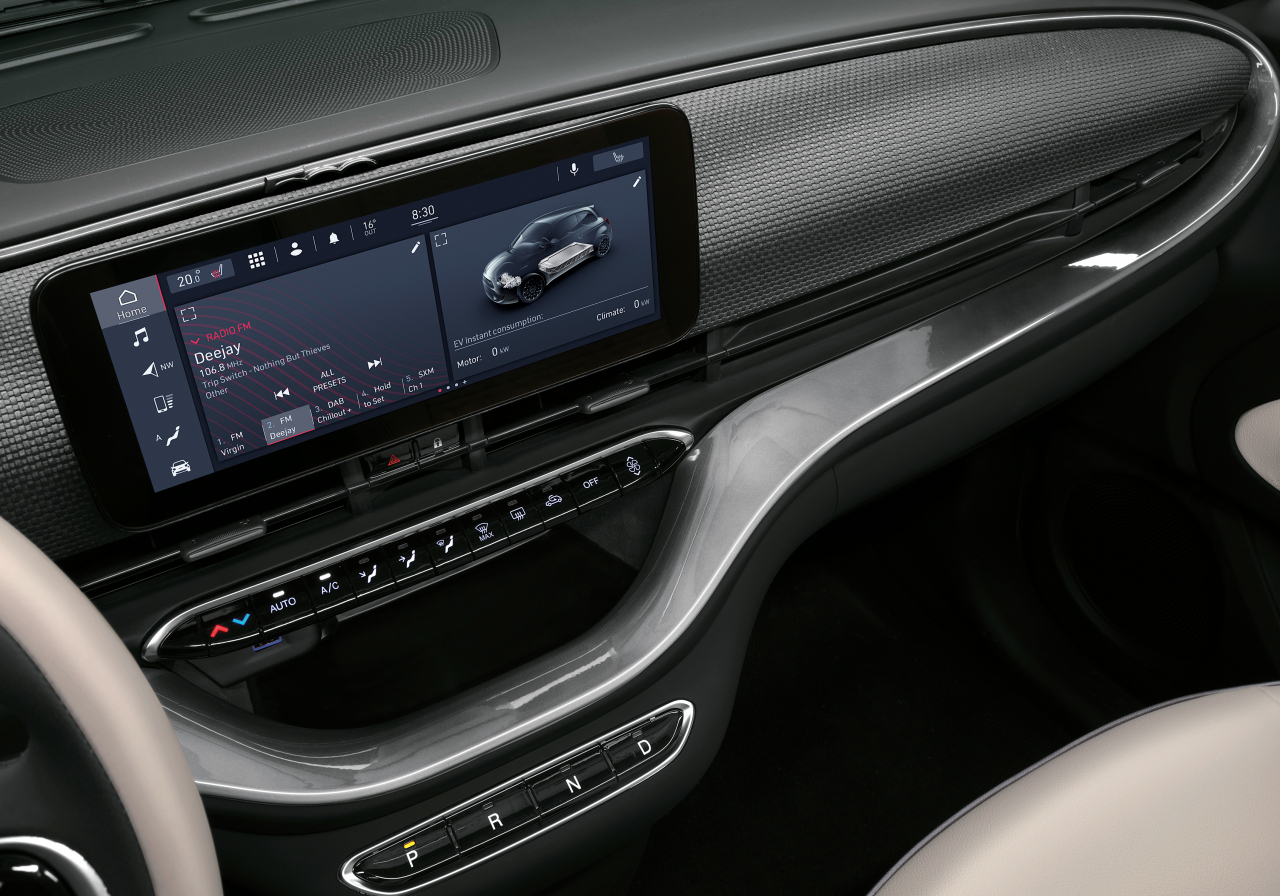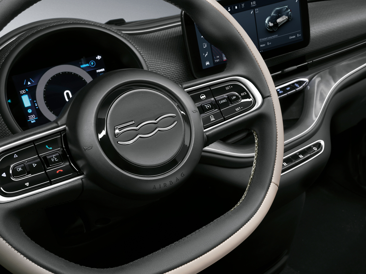Салон Fiat 500 стал просторнее, во многом за счет ровного пола. Также дизайнеры серьезно доработали отделку внутреннего пространства. На передней панели располагается новый 10,25-дюймовые сенсорный экран информационно-развлекательной системы.