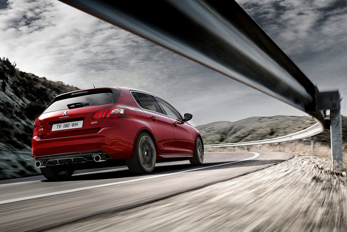 Внутри «заряженную» версию 308-го выдают спортивные сиденья, отделка салона черной кожей с красной прострочкой, металлические вставки в панелях интерьера, а также руль и рычаг коробки передач специального дизайна.