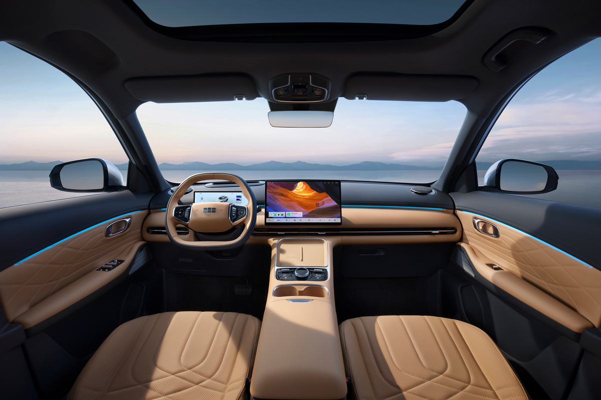 В салоне автомобиля — 15,4-дюймовая мультимедийная система, 10,2-дюймовая цифровая приборная панель, аудиосистема Flyme Sound с 16 динамиками и сабвуфером, а также атмосферная подсветка с 256 цветами на выбор.