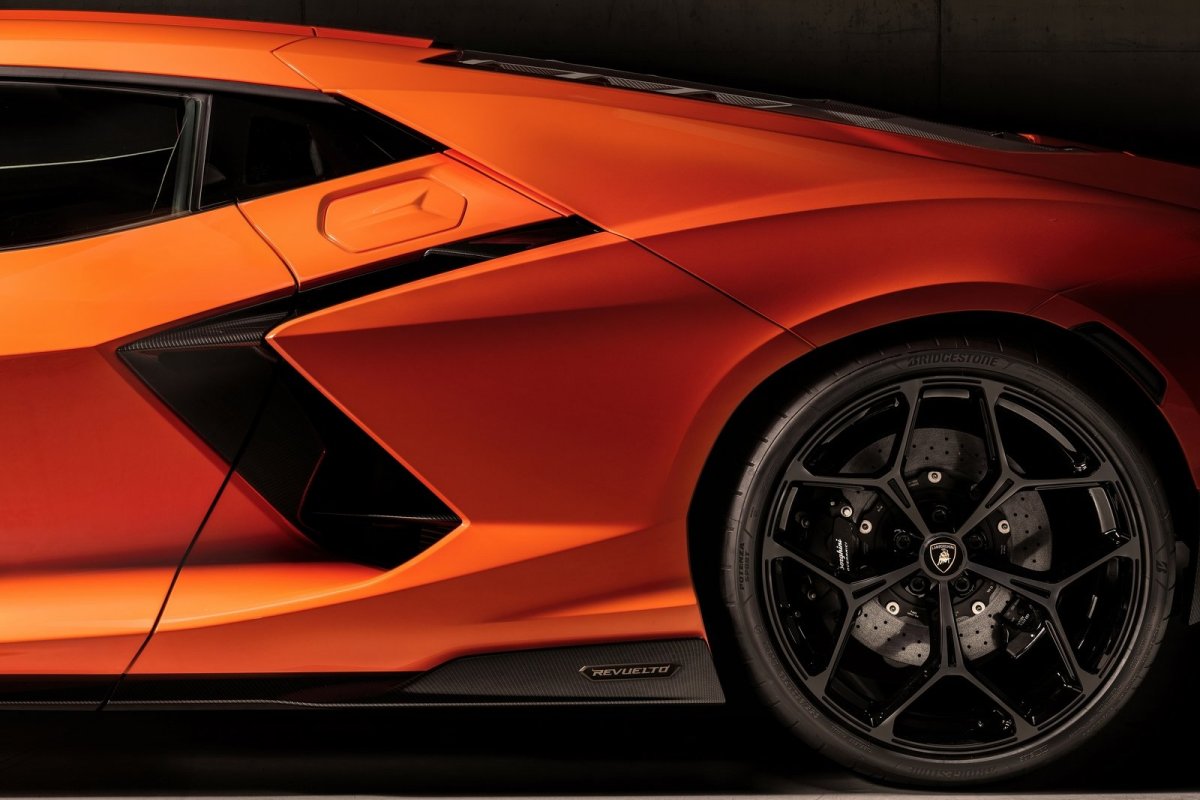 Дело в том, что Revuelto – это первый Lamborghini с гибридной силовой установкой, если не считать штучных Sian (63 экземпляра) и Countach LPI 800-4 (112 экземпляров). Только так в Сант'Агата-Болоньезе смогли сохранить атмосферный V12 объемом 6,5 л, специально разработанный для «Авентадора». Бензиновый мотор, кстати, теперь имеет индекс L545 вместо L539: тут новая система впрыска, увеличенная с 11,8:1 до 12,6:1 степень сжатия и сдвинутая до 9500 об/мин отсечка. В Lamborghini добавляют, что массу двигателя заодно удалось снизить с 235 до 217 кг.