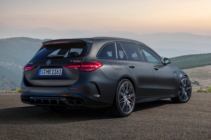 Задний электромодуль у C 63 тот же, что и у более мощного лифтбека. Его доступная в течение 10 секунд пиковая отдача составляет 150 кВт (204 л. с.) и 320 Нм. Таким образом, при ускорениях пиковая отдача может достигать 680 л. с. и 1020 Нм – то есть со сменой поколения C 63 стал сразу на 170 сил мощнее в сравнении с прежним C 63 S с битурбомотором V8. Теперь это официально самый мощный серийный седан в истории марки, ведь 4,0-литровый V8 у Mercedes-AMG E 63 S нынешнего поколения развивает только 612 л. с. и 850 Нм.