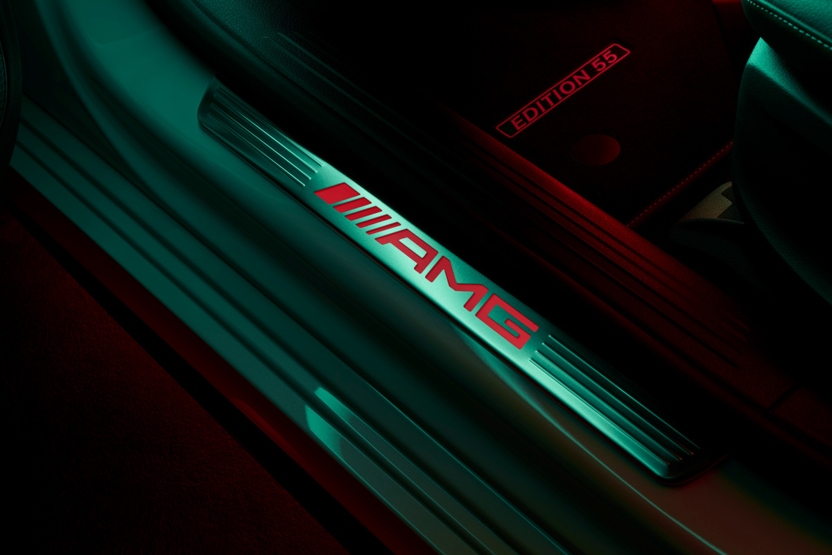 Машины Edition 55 доступны в черном либо белом цвете, а салон отделан сочетанием красной и черной кожи, причем спортивные сиденья AMG Performance доступны по умолчанию. Руль с красной меткой украшен числом «55», которое также вышито на салонных ковриках. Еще одна особенность – пороги с красной подсветкой логотипа спортивного подразделения. Наконец, покупателям юбилейных A 35 и CLA 35 подарят чехол-тент с серебристым гербом AMG в районе лобового стекла.