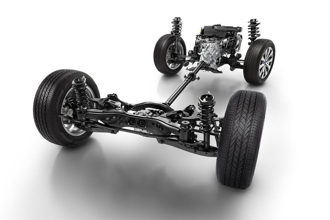 Как и на модели первого поколения, от типа коробки передач зависела конструкция полноприводной трансмиссии. Outback с «механикой» оснащался «симметричным» дифференциалом, распределявшим момент по осям в соотношении 50:50. Автомобиль с вариатором получил многодисковую муфту в «центре», распределяющую момент по осям в зависимости от дорожных условий. На 3,6-литровой версии с «автоматом» межосевой дифференциал был цилиндрическим, а момент между передней и задней осями распределялся в пропорции 45:55.