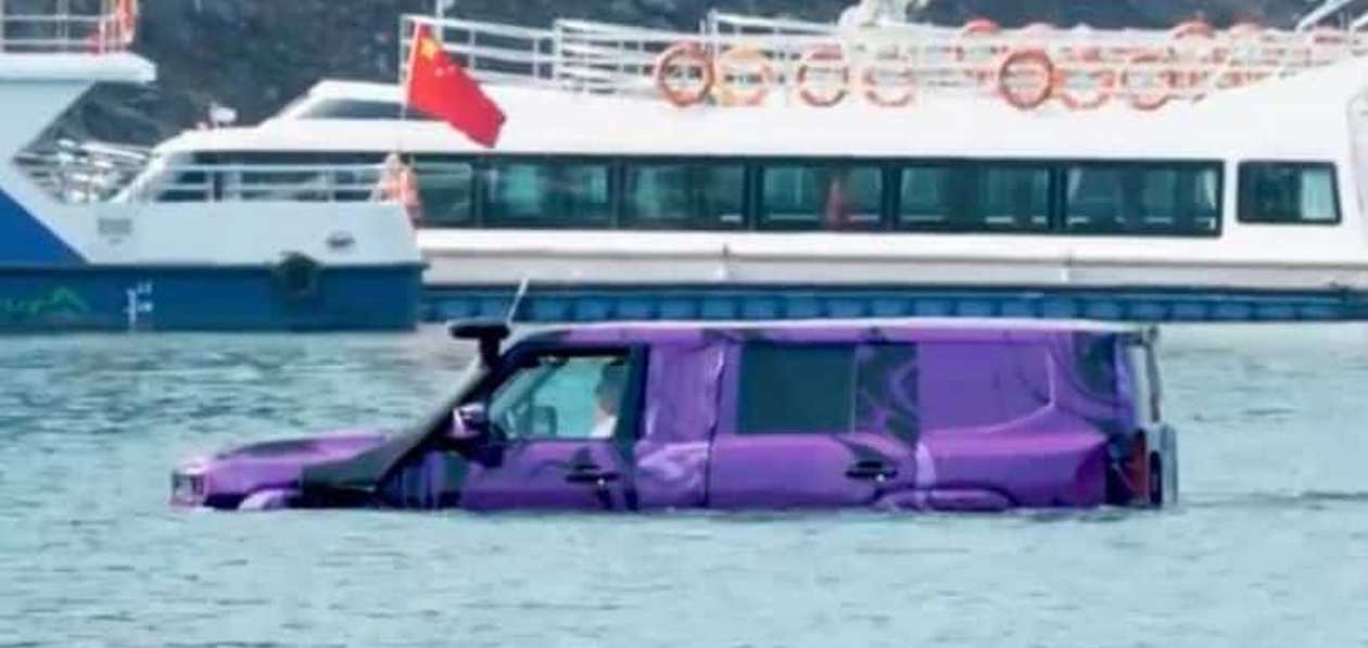 На опубликованных фотографиях автомобиль скрыт под камуфляжем; показано, как он преодолевает водные препятствия.