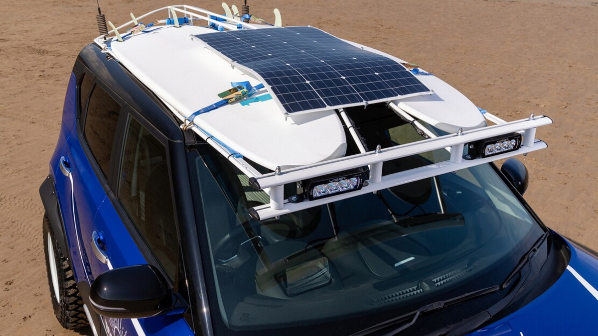На крыше шоу-стоппера установлен специальный багажник, рассчитанный на две доски для серфинга. Сверху на багажнике крепится солнечная батарея, соединенная в систему с отдельным 12-вольтовым аккумулятором и инвертором на 220 вольт. От системы можно запитать компактный холодильник, прожектор или другое бытовое оборудование, сообщают в компании.