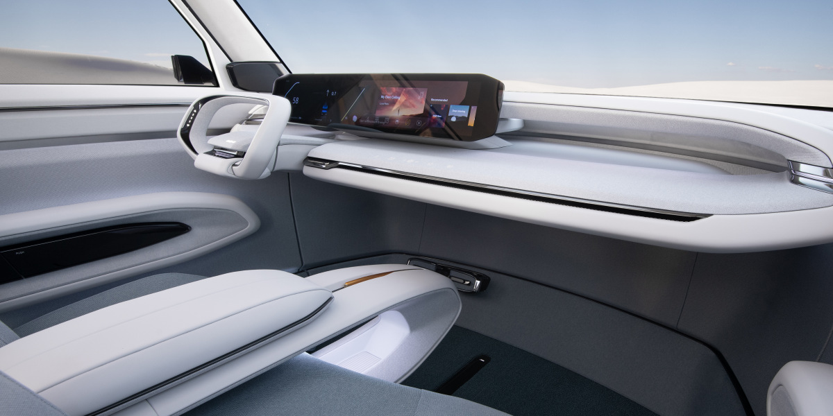 Функцию приборной панели и экрана мультимедиа выполняет единый дисплей диагональю 27 дюймов, а руль вместе с педалями могут убираться, если доверить управление электронике.
