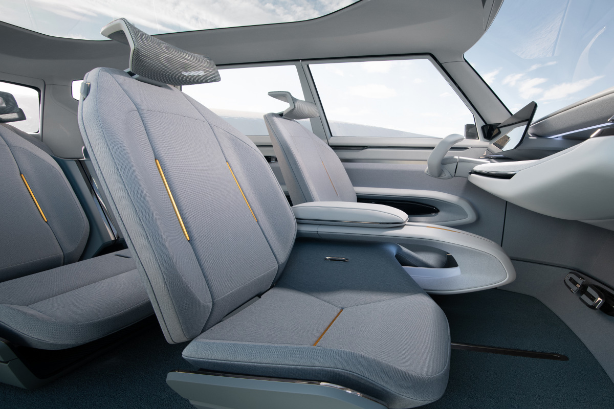 Помимо стандартного режима, где все кресла расположены по направлению движения, предусмотрен также режим «Паузы»: в нем два кресла второго ряда складываются, образуя стол, а передние сиденья разворачиваются на 180 градусов. Тем самым салон кроссовера превращается в подобие гостиной.