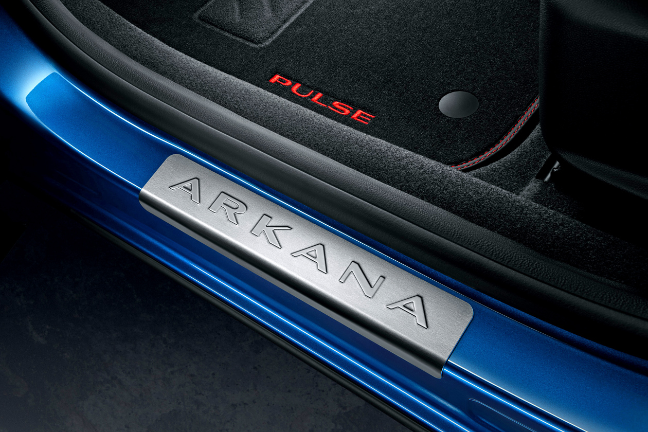 Передняя панель автомобиля и дверные карты отделаны под карбон, сиденья получили особую комбинированную обивку с красной прострочкой и вышитым названием серии; красные вставки применены в отделке дверей, центральной консоли и воздуховодов. Кроссовер в новой спецверсии укомплектован также текстильными ковриками с логотипом Pulse, декоративными накладками на пороги с надписью «Arkana», а также алюминиевыми накладками на педали.