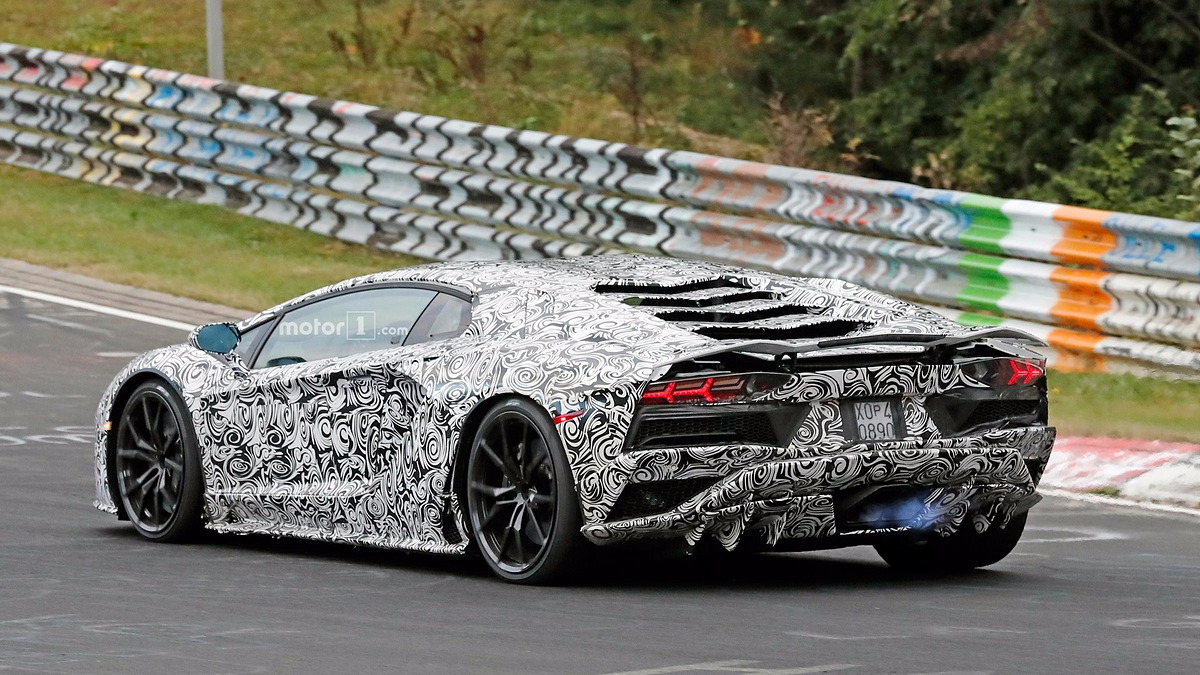 Рестайлинговая версия суперкара Lamborghini Aventador замечена в ходе испытаний на знаменитой Северной петле Нюрбургринга.