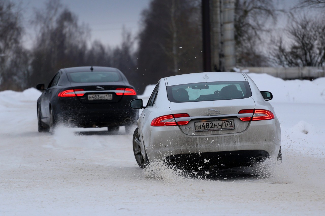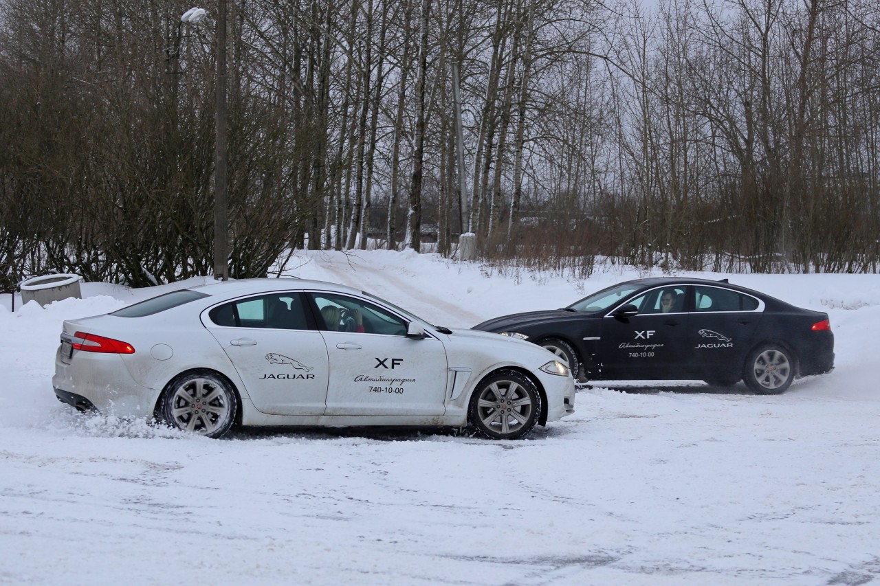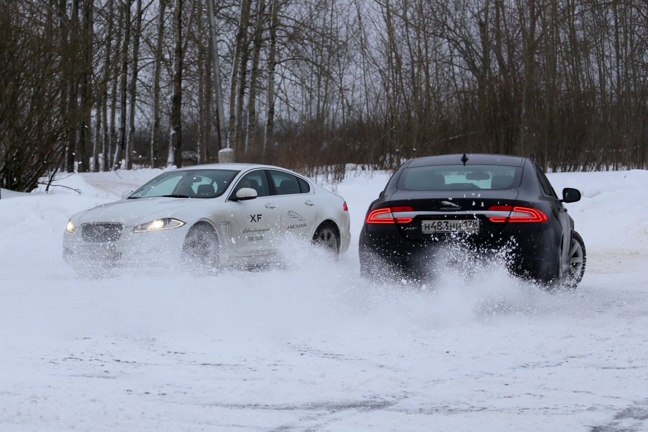 Jaguar и Land Rover неразлучны. Вот и на полигоне Land Rover Experience они, конечно же, присутствовали. Мастера дрифта устраивали на заднеприводных седанах XF настоящие танцы.