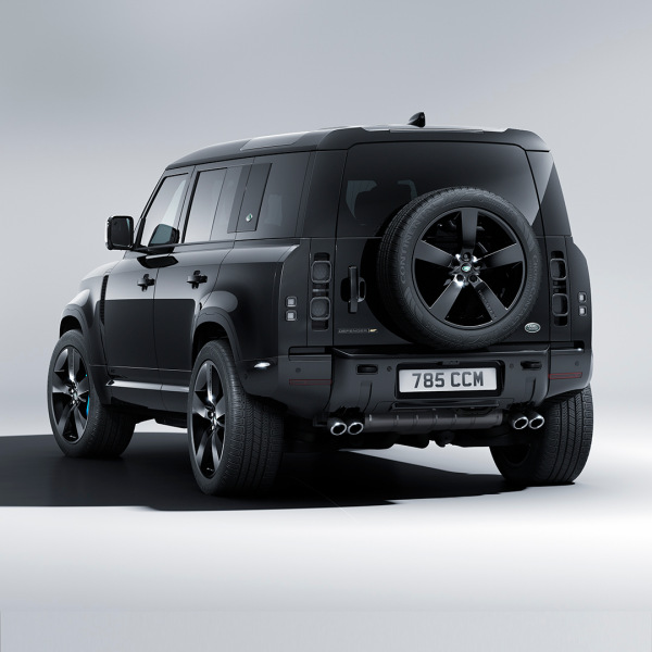 Спецверсия получила расширенный пакет Black Pack, включающий 22-дюймовые черные колесные диски, передние тормозные суппорты синего цвета и бейдж Defender 007 рядом с запасным колесом.