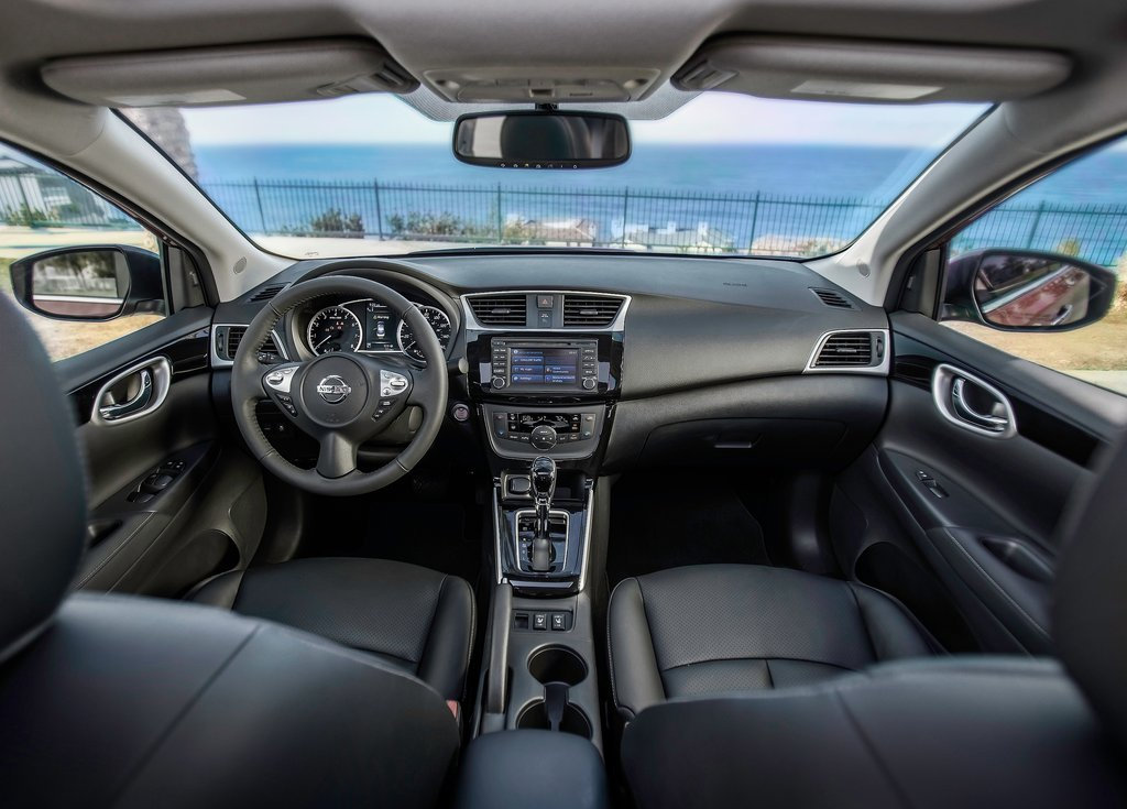 В салоне изменились центральная консоль (она теперь напоминает аналогичную деталь интерьера кроссовера Qashqai), руль на Sentra теперь – от спорткупе 370Z, а в дорогих комплектациях мультимедийная система управляется через новый 5,8-дюймовый сенсорный экран.