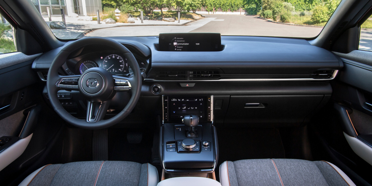 Свой первый электрокар Mazda представила еще в 2019 году. На модели дебютировала 355-вольтовая архитектура e-Skyactiv с тяговой линий-ионной батареей емкостью 35,5 кВт•ч, интегрированной в силовую структуру кузова.