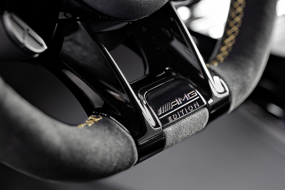 Внутри новый AMG GT 4-Door Coupé Edition 1 будут отличать передние сиденья AMG Performance с функцией памяти, отделка кожей Nappa с контрастной желтой прострочкой, обшитое микрофиброй Dinamica рулевое колесо AMG с логотипом спецсерии, декоративные вставки из матового карбона, а также коврики с кожаной окантовкой, логотипами AMG и прострочкой желтой нитью.