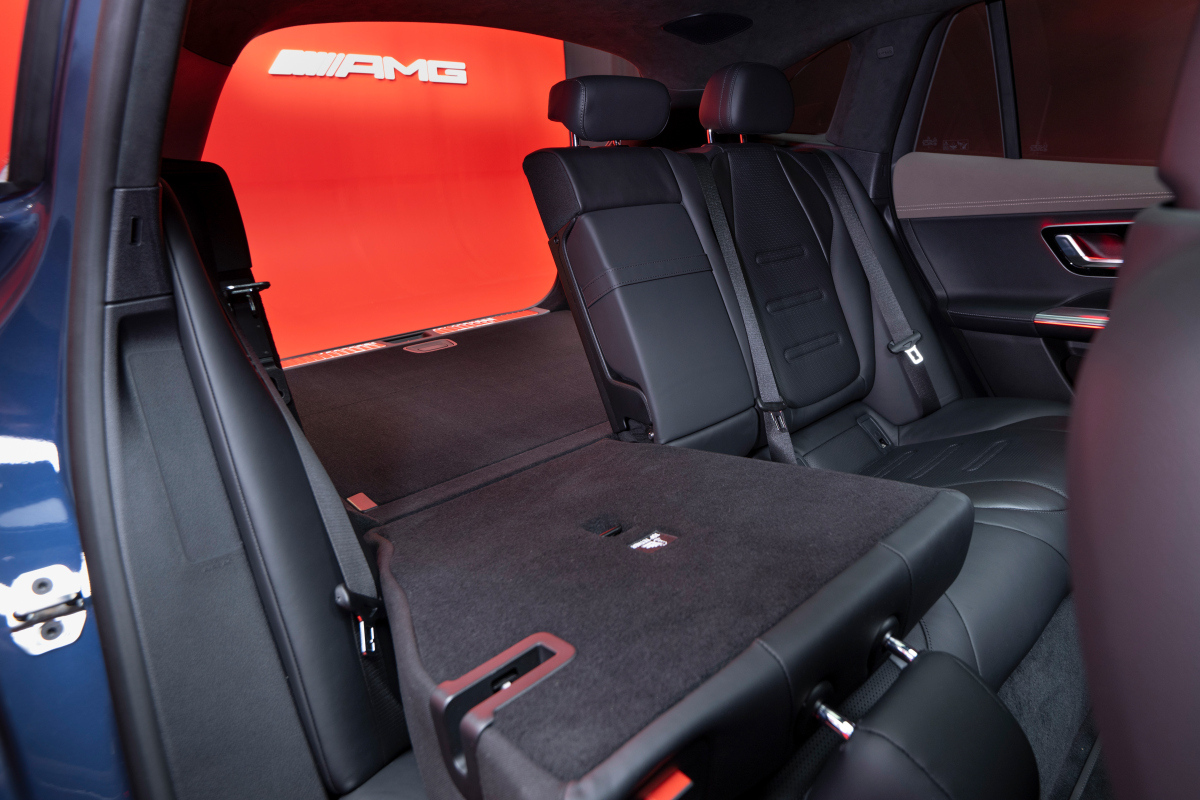 Две AMG-версии – EQE 43 и EQE 53 – отличаются особым обвесом и фальшрадиаторной решеткой с имитацией вертикальных прутьев. Штатно установлены 20-дюймовые колеса, за доплату будут доступны диски R21 и R22. Подруливающая на угол до 9 градусов задняя ось входит в базовое оснащение, радиус разворота составляет 10,9 м против 12,3 у модели со стандартными 3,5 градуса (максимальный угол поворота задних колес ограничен программно). Но на обычных EQE SUV опциональная система может поворачивать задние колеса на угол до 10 градусов, благодаря чему радиус разворота еще меньше – 10,5 м.