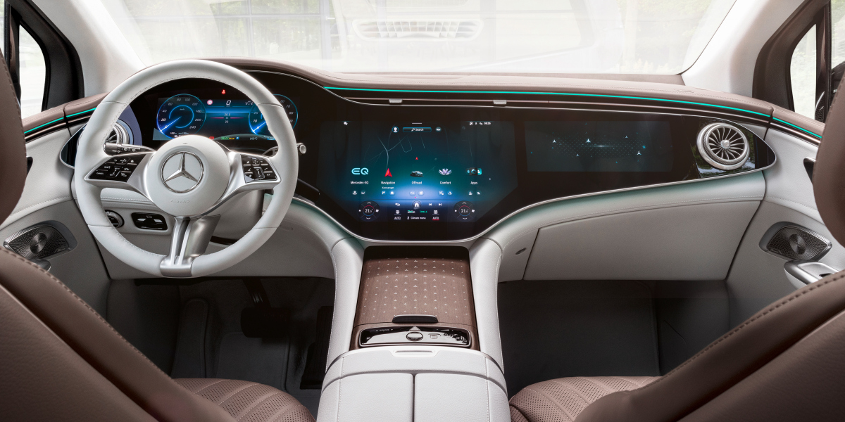 Как и в случае с двумя версиями EQS, интерьеры EQE-лифтбека и EQE-кроссовера почти идентичны. Здесь тот же «парящий» центральный тоннель и опциональная мультимедиасистема MBUX Hyperscreen с тремя дисплеями (цифровая «приборка» и пассажирский дисплей диагональю 12,3 дюйма и 17,7-дюймовый тачскрин) под широким стеклом. В штатной комплектации машины будут оснащаться 11-дюймовым вертикальным сенсорным экраном мультимедийной системы (как у S-Class) и дисплеем приборной панели диагональю 12,3 дюйма.