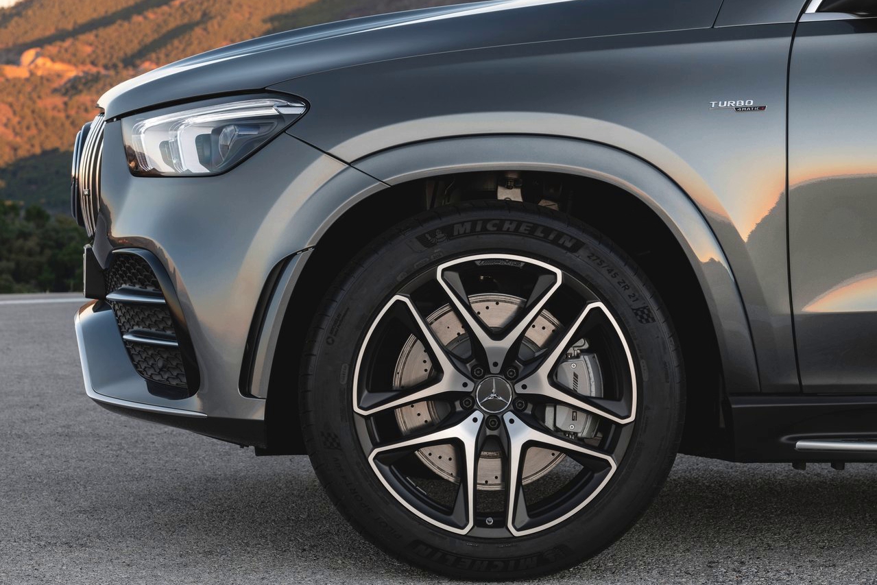 Что касается внешнего вида, GLE 53 получил более агрессивную внешность по сравнению со стандартной версией. В первую очередь брутальности добавляет «семейная» решетка радиатора AMG. Автомобиль предлагается с семью вариантами легкосплавных дисков диаметром от 20 до 22 дюймов.