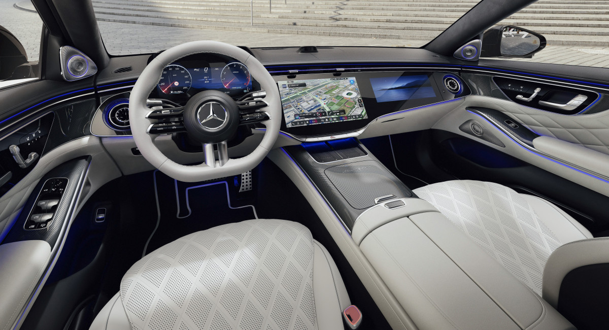 Штутгартский флагман получил также систему голосового управления “Hey Mercedes” на основе искусственного интеллекта, а также «продвинутую» навигационную систему MBUX Surround Navigation, базирующуюся на данных Google Maps. Управляет всем этим «цифровым хозяйством» фирменная операционная система MB.OS (Mercedes-Benz Operating System), соединенная с облачным сервисом Mercedes‑Benz Intelligent Cloud; все необходимые обновления ПО скачиваются «по воздуху».